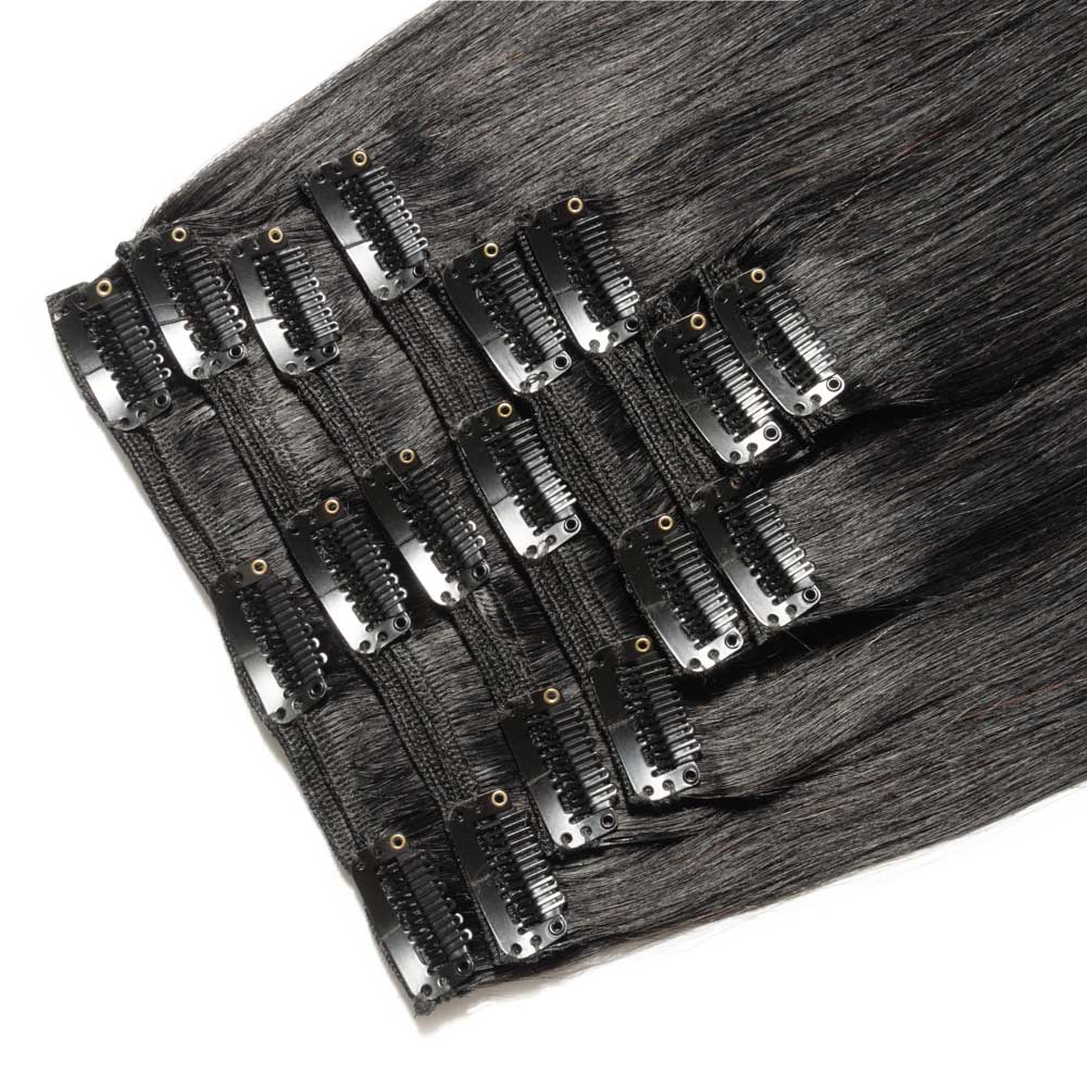 Clip in Hair Extensions Straight #1 Jet Black Remy Human Hair